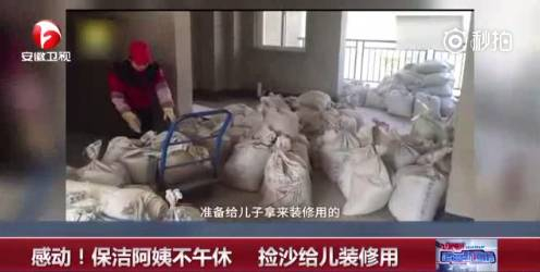 保洁阿姨不午休,捡沙给儿子装修用