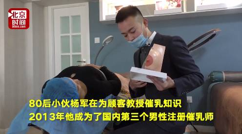 80后小伙杨军的职业是催乳师,这个职业让他经历不少尴尬,包括家人的反对,女朋友的不理解,少有顾客前来让他服务。但他说,手法和力度要求高,男性体力上更合适,且收入可观。他说,“每月有四五个顾客会要求我服务”。(@时间视频)