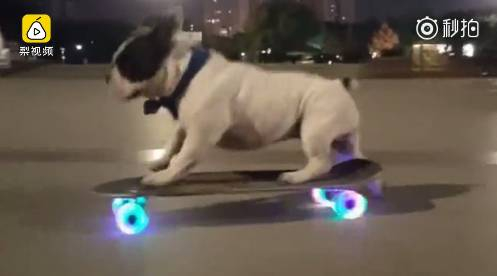 斗牛犬自学一年成“滑板小王子”