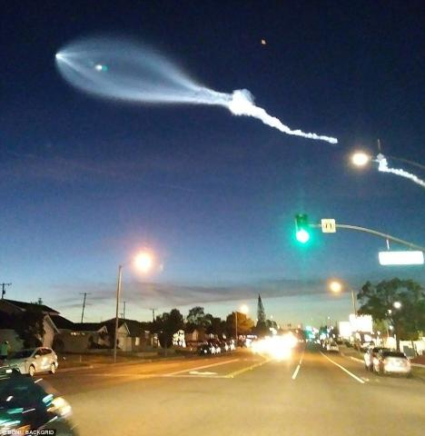 原来,这个让美国人们惊着的物体是一枚SpaceX公司的"猎鹰-9号"火箭。当天下午5点半左右,这枚火箭在美国范登堡空军基地发射升空,将美国铱星公司最新的10颗卫星送入到低地球轨道,这些卫星用于手机全球通讯。这次发射也是SpaceX本年度最后一次发射任务。