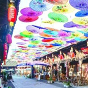 青石甬道蜿蜒着,漫进不同的院落,卷棚式屋顶层层叠叠,呈现青灰色柔顺的弧度……走在民国风情街上,一把把色彩斑斓的油纸伞悬于头顶,阳光透过缝隙照在石板街面上。在这条街上,有钱币博物馆、魏明伦文学馆、崔永元电影传奇博物馆,街道外延则是绿荫掩映的老公馆。