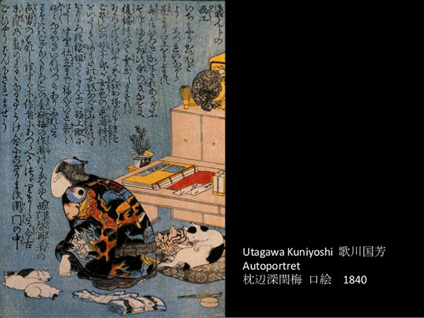唐猫的形象一直持续到江户时期才完成日本本土化,也是在这一时期,日本猫的流行款式开始发生阶层分化。唐猫通常为长尾猫,这种带有贵族遗风的审“猫”取向仍然广泛地存在于正统画家的作品中,江户前期代表画家冈山应拳的《睡猫图》到江户后期南宗派名家田能村竹田的《柳猫图》,图中的猫都长着自然的长尾巴,但在以市井生活为主要反映对象的浮世绘中,多出现无尾猫、短尾猫的图像。