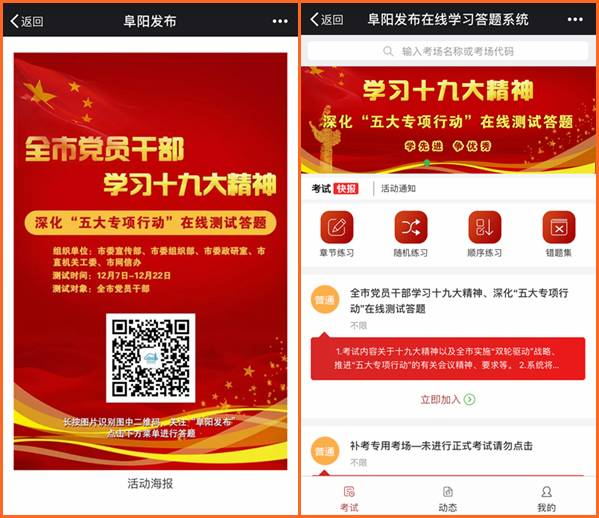 目前,阜阳发布正在进行【深化“五大专项行动”在线测试答题活动】,已经有超过5w用户参与答题。