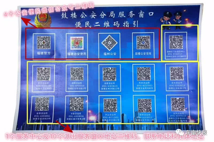 鼓楼公安分局服务窗口便民二维码指引