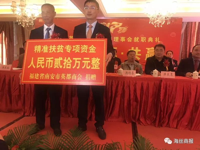 会上,英都商会向英都镇捐赠精准扶贫专项资金20万元。