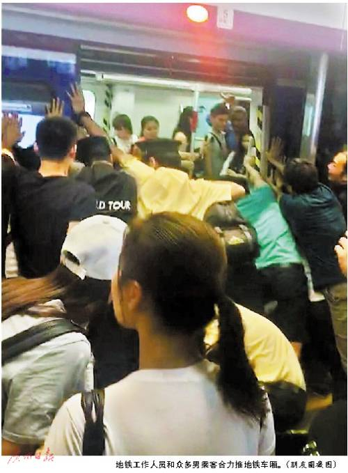 “一二三!一二三!”团结就是力量,越来越多乘客加入推地铁的行列,在众人的呐喊声中,过百吨重的地铁终于被推开足够的空间,女乘客的右腿被成功拉出,前后不过五分钟。