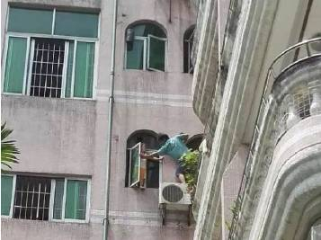 装修工半空护住!