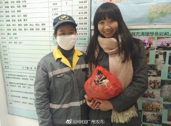 一年多来,环卫工袁大姐把在工作中捡到的钱和卖废品的钱存起来,全部捐给了贫困的学生,至今已累计捐资近3000元。袁大姐腼腆地说:“我自己生活够用了,还是觉得捐出来,可以帮助别人更有意义。”