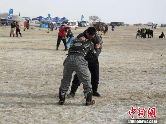 尽管当日当地气温降至零下十几摄氏度,还下起了雪,在搏克比赛现场,百余位搏克手进行了激烈地对决,观众大呼精彩。