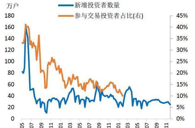 自2015年股灾以后,市场逐渐抛弃题材股和亏损股,重视绩优股的价值投资。2016年以来新开户投资者数量维持低位,散户投资者持仓占比下降,海外机构投资者入市节奏加快,境内机构投资者影响力提高,A股正逐渐向发达国家股市的机构化趋势演变。