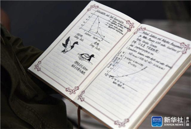 这是徐卓的笔记本(8月17日摄)。徐秀娟烈士的侄女、徐家第三代养鹤人徐卓接过了爷爷、姑姑、父亲的接力棒,毕业后回到了扎龙自然保护区工作。新华社记者梁冬摄