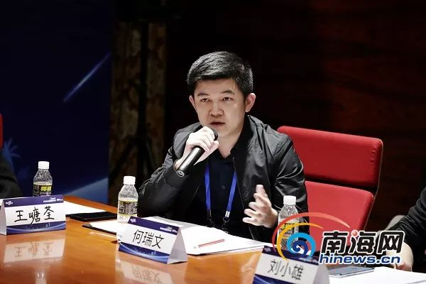 海南龙拓网络科技有限公司总经理何瑞文发言。南海网记者刘洋摄
