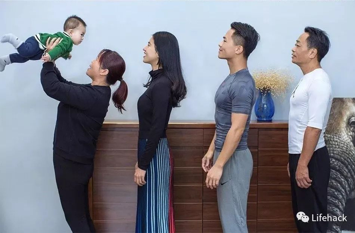 从右向左,老爸的啤酒肚没了,小伙的下颚线出来了,媳妇产后练出了小蛮腰,就连老妈也比以前瘦了两圈。
