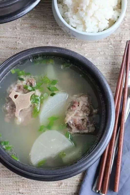 4、煮好后,加入适量葱花和盐,搅拌一下就可以出锅了。冬天来一碗萝卜排骨汤,滋阴补气,开启元气满满的一天!