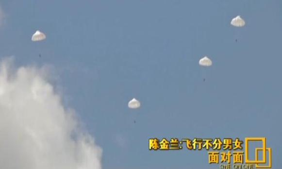 陈金兰:那个时候不容我多想,而且后面还有很多战斗员还有很多伞兵,不容我去想,发生什么事,我将会怎么办,我就在想我这个时候,速度不能失速,我现在高度是多高,我们有安全高度下面有可能有山,我的安全高度比如是1900米,就不能再下了,再下的话又看不见,你会撞山的。