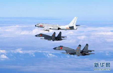 ↑中国空军多型战机远海训练(资料照片)。新华社发(杨勇摄)