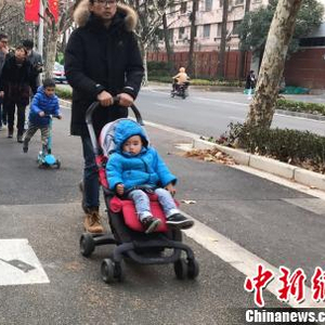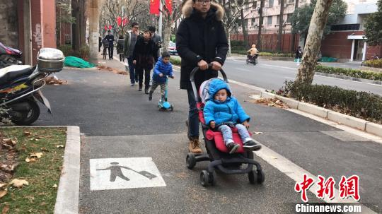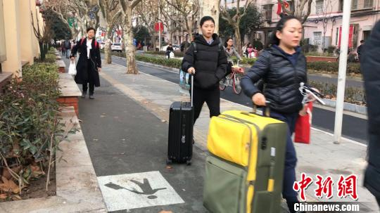 中新网上海12月24日电 (王子涛)地铁站通往校区那凹凸不平的人行道地砖,此前一直是五角场“拉杆族”同学们心中的一道坎。如今经过改造,上海第一条“行李箱专用道”在政通路诞生,同学们可以在专用道上平稳地拉行李箱,婴儿车上的宝宝也不再担心颠簸。