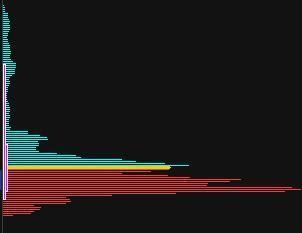 当大量的筹码堆积在一起的时候,筹码分布看上去像一个侧置的群山图案。这些山峰实际上是由一条条从左向右的横线堆积而成,每个价位区间都有一条代表持仓量的横线。持仓量越大则线越长,这些长短不一的线堆在一起就形成了高矮不齐的山峰状态,也就形成了筹码分布的形态。
