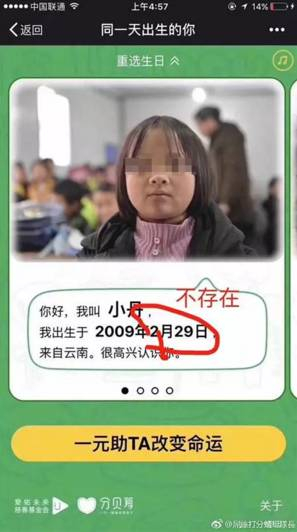 “同一天出生的你”募捐遭质疑 同一张受助学生照片 姓名生日却不一样