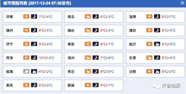 山东省气象台12月24日06时天气预报: