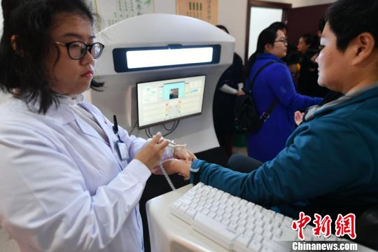 接受检测者回答设备上一系列问题,即可得知身体大致情况。 吕明 摄