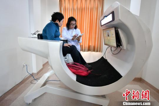 中新网福州12月24日电(叶秋云)在福建中医药大学国医堂内,一个诊室的设备格外特别,进诊室中的设备前,需先建立档案选择中医体检或西医体检,后在该设备中进行状态辨识、风险评估,这个设备被医师们称为“中医健康管理太空舱”。