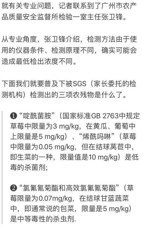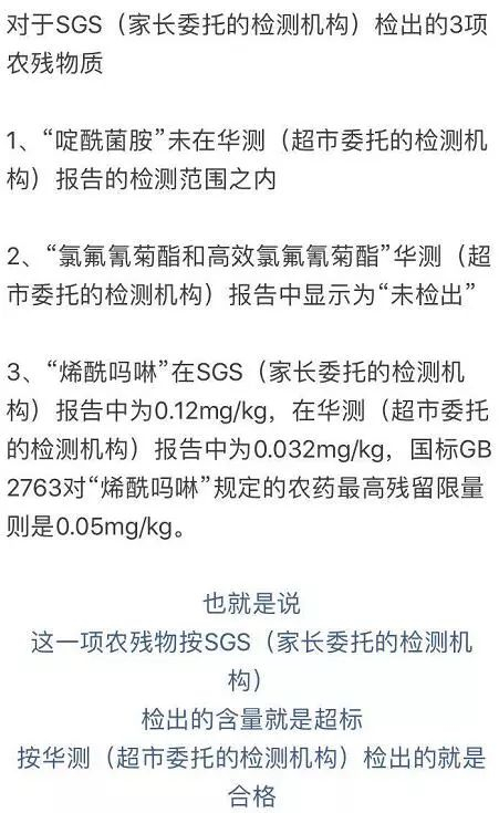 张卫峰称:对于检测结果的判定,要根据标准规定来判定,“我们国家当前最新的农药残留限量标准是GB 2763-2016,华测(超市委托的检测机构)的检测结果根据该标准判定是合格的”。