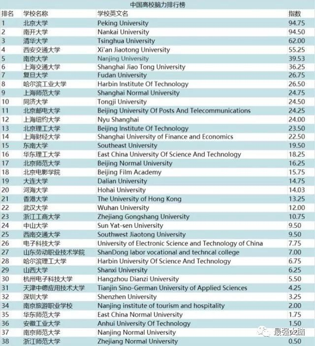 前15没你们学校?再来看这份排名前38名的高校榜单: