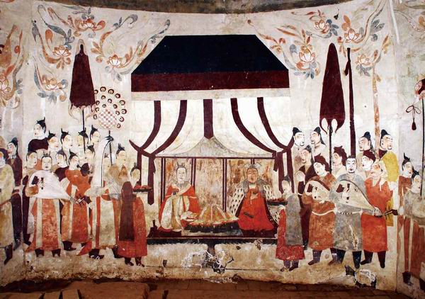 太原北齐徐显秀壁画墓墓室正面 《墓主人和乐伎图》