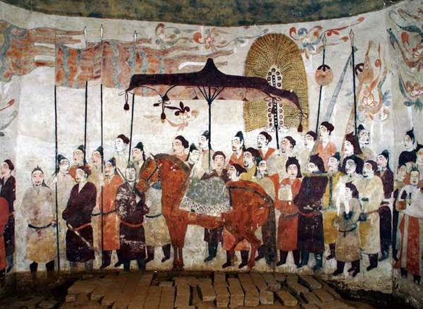 太原北齐徐显秀墓墓室壁画西壁 《鞍马仪仗图》