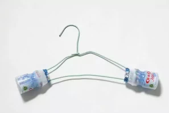 把两个小瓶子各塞在衣架两旁就ok!