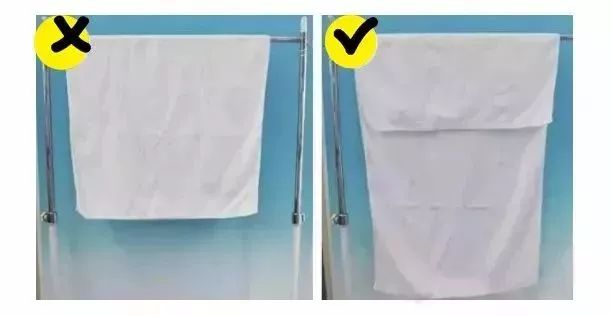 比如毛巾按照一长一短的方法去挂,接触到空气的面积更大,就能干的更快哦!