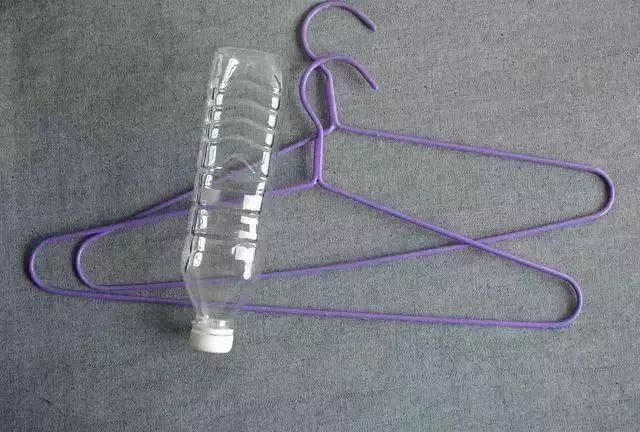 把两个晾衣架,分别插进剪好的塑料瓶缝隙里即可。