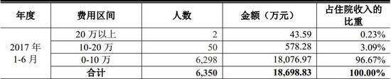精神疾病患者的治疗费用价格不菲,每经小编(微信号:nbdnews)注意到,招股书披露,在2015年,有一位患者的治疗费用就达到了42万。还有不少患者治疗费用也在30万左右,而绝大部分患者的治疗费用在10万元以下。下表是康宁医院住院病人的费用分布: