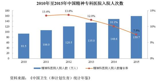 温州康宁医院高床位使用率的情况,和精神疾病的不断增长有关。随着现代社会生活压力加大,以及人口老龄化程度不断加深,我国居民精神障碍患病率逐渐上升——根据国家卫计委的数据,截至2016年底,全国在册严重精神障碍患者已达到540万例。