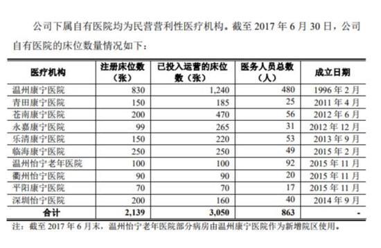 截至2017年6月30日,公司实际投入运营10家自有医院,并管理8家医疗机构,公司实际投入运营的自有床位数3050张,管理的床位数1100张。