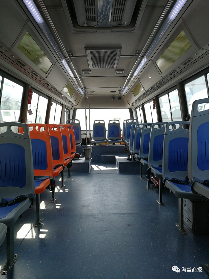 宽敞的车内空间。相比普通公交车,纯电动公交车没有了发动机发出的巨大噪音和振动,行驶起来更加安静、平稳和舒适。