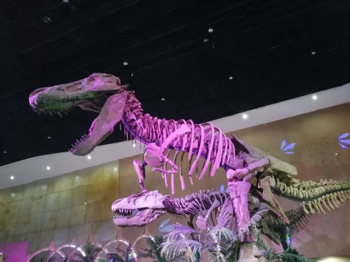 暴龙馆内看暴龙、鸭嘴龙、角龙等、史前巨兽的打架现场,惊心动魄