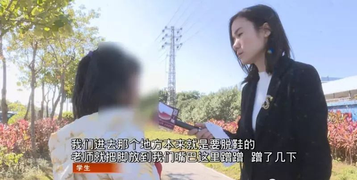 当时,语文老师让大家默写一篇新学习的文章,因为写不上来,老师就把脚伸到了她们的脸上,被老师用脚蹭过的三名学生都是女学生。