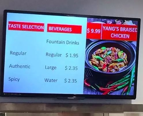 杨铭宇黄焖鸡美国店导餐牌。图片来源:澎湃新闻