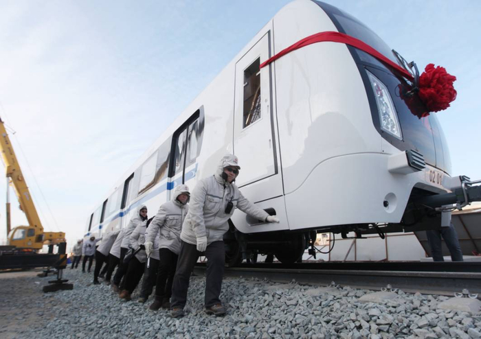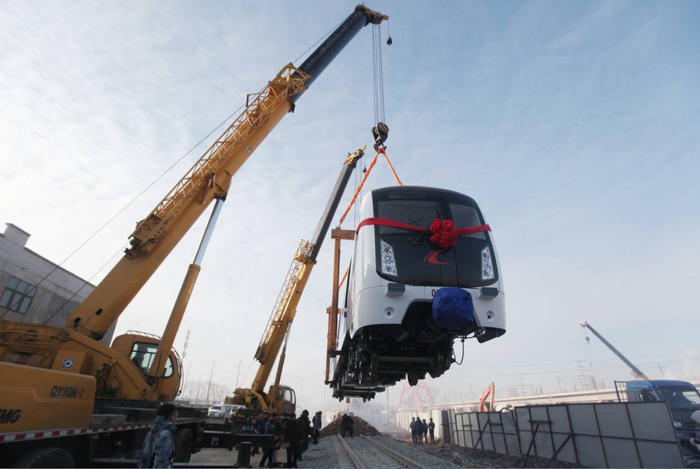 12月25日,长春地铁2号线首列地铁列车0201号运抵西湖车辆段。记者了解到,长春地铁2号线一期工程共配备地铁列车22列,其余地铁列车将陆续运抵车辆段。