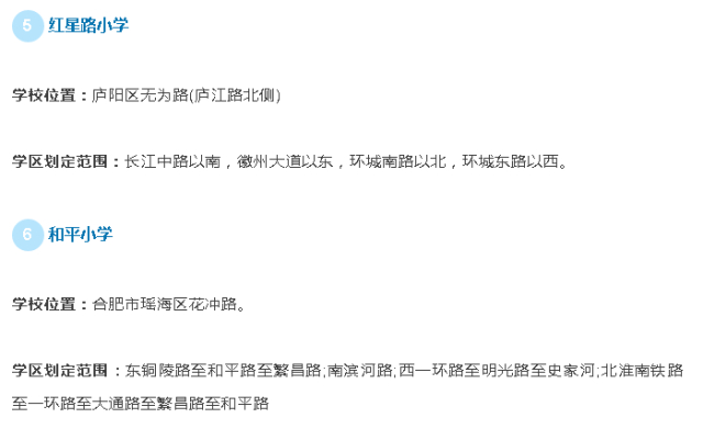 10大小学:合肥师范附属小学、六安路小学、南门小学、安居苑小学、青年路小学、红星路小学、和平小学、屯溪路小学、西园新村小学、长江路小学。