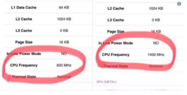 感谢国外网友的机智, 有人尝试把iPhone 6的电池更换后,CPU效能就从600MHz提升回出厂时的1400MHz,并且做了测评数据,几乎可以媲美新机。