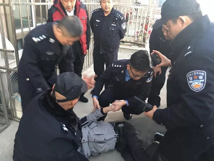 情况十分危急,现场民警立即劝阻,但男青年比较固执,低头不语。由于楼顶风大,他拉了拉防寒服的帽子,紧握钢筋的双手,开始瑟瑟发抖。这时,一旦他坚持不住,随时可能坠楼身亡。民警按他的要求,纷纷靠后。经过一番动员,他又翻越回钢筋避雷针里侧,情绪也有些舒缓。张毅教导员此时渐渐靠近,蹲下身子,贴近交谈。就在刹那间,张毅教导员一伸手猛的抓住男青年衣领,将其死死按倒。随后,民警刘辉、闫琳琳、陈靓,以及顾宏政委、荣若钢大队长、商丰辉副大队长、张超杰副所长闪电般冲上去,有的拉住男青年裤腰、有的抓住手腕,有的按住胳膊,有的抱住张毅教导员腰部,将男子成功救下。