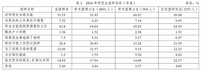 2016年,中国研究生德育委员会在全国范围调研发现,大多数人的读研目的都是“毕业后能找到更满意的工作”,其次才是“对科学或学术研究感兴趣”。