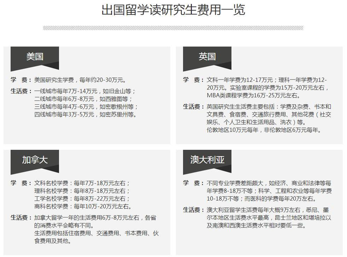 教育机构“新东方”总结的出国留学读研究生费用一览