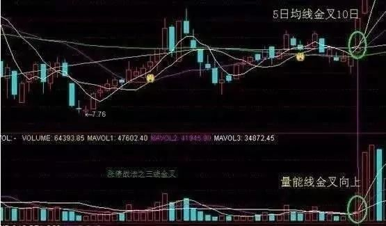 三金叉指标指的是均线、均量线与MACD的黄金交叉点同时出现,股价在长期下跌后开始启稳筑底,而后股价缓慢上升,这时往往会出现5日与10日均线、5日与10日均量线以及MACD的黄金交叉点,这往往是股价见底回升的重要信号。