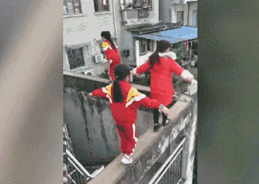 12月19日,四川资中第一国际小区外,为了好玩,一些学生放学后在近20米高、宽仅40厘米、没有任何防护的墙上行走,其中一个小女孩竟然还小跑了几步,让人看了心惊胆颤。