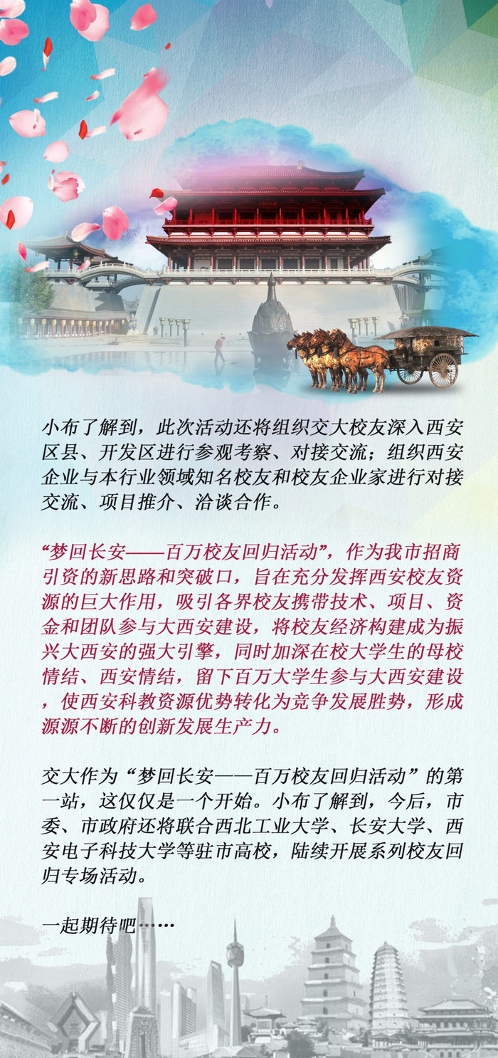 今天,“梦回长安—百万校友回归”系列活动在西安交大正式启动,对此,我们倍感骄傲自豪、备受鼓舞振奋!