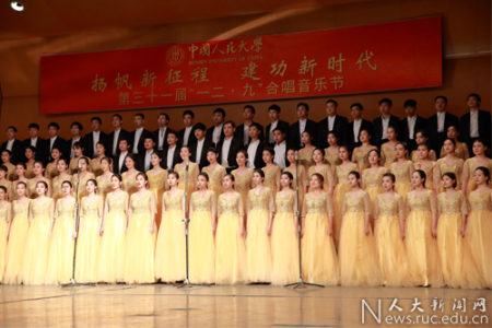 “一二·九”合唱音乐节是中国人民大学最具影响力的校园文化品牌活动之一,至今已成功举办三十一届。每年都有近2000名新生参与组织和排练工作,来自全校各学院的20余支代表队齐聚明德堂,在经久不衰的爱国主义歌曲中汲取集体主义、时代精神的力量,激励广大学子坚定理想信念,增强爱党爱国、爱校荣校意识。